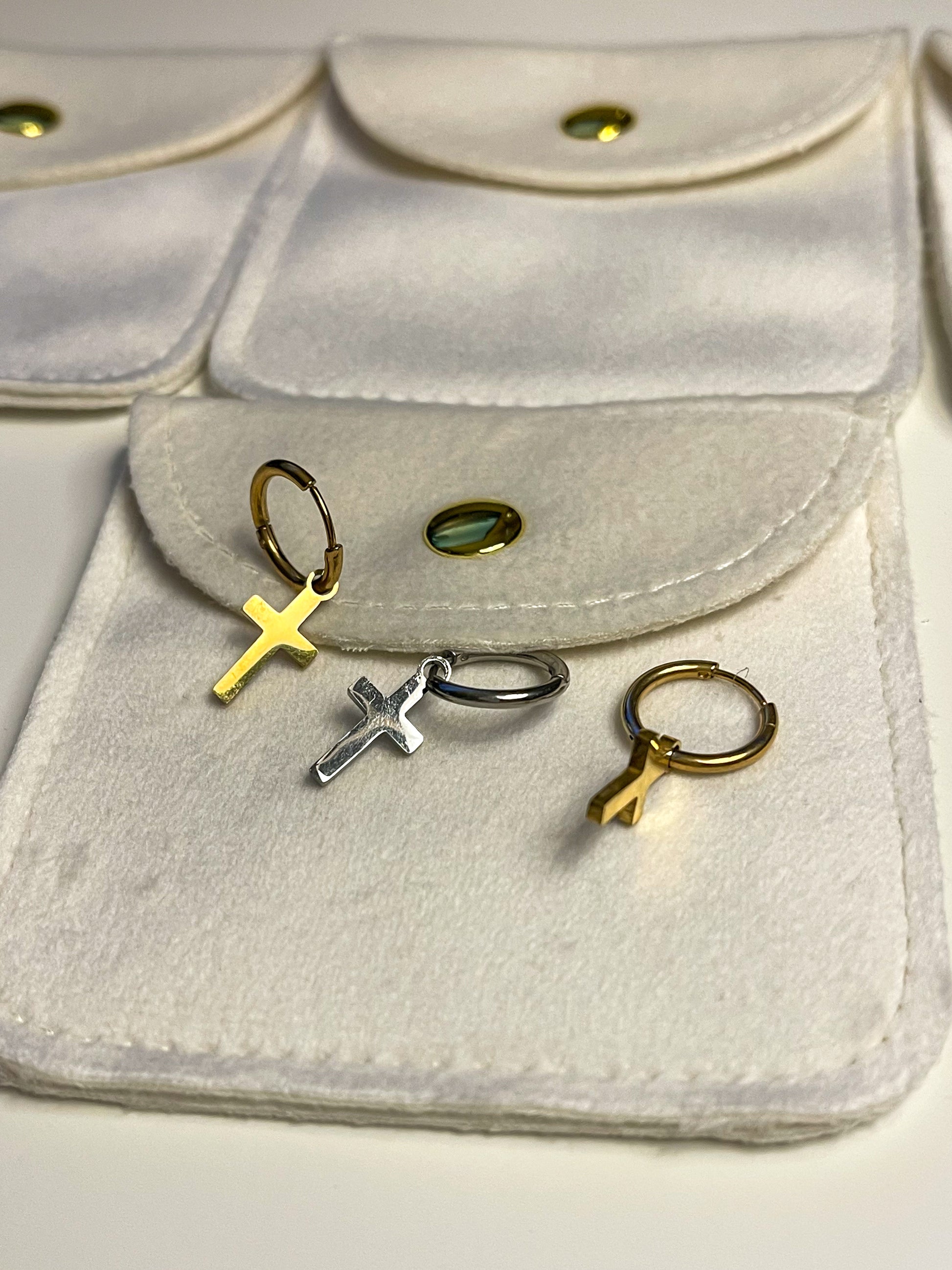 Brincos de Homem com Cruz em Aço Inoxidável